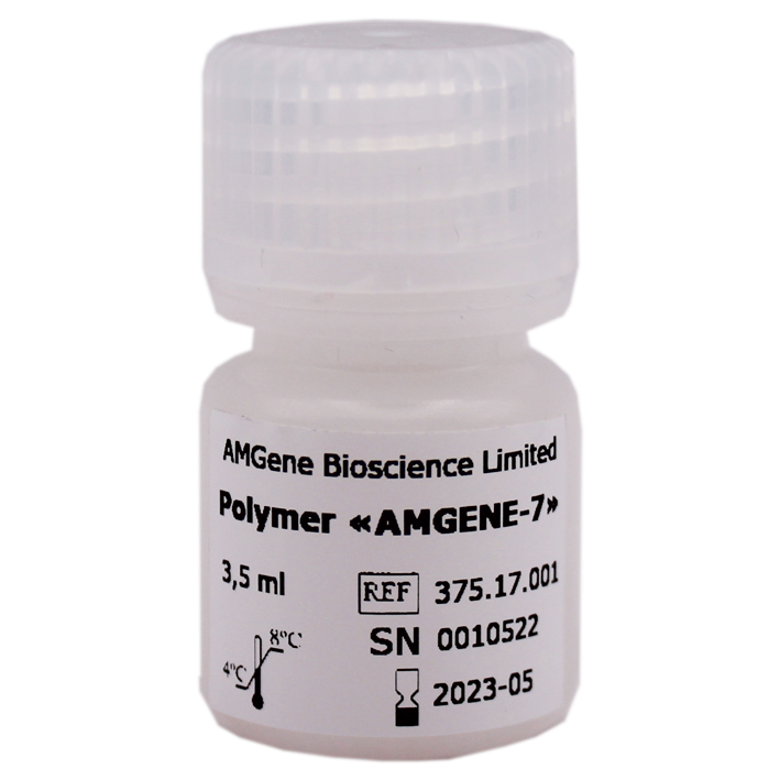 AMGENE-7 polymer is a high-tech polymer matrix for sequencing and fragment analysis. In terms of its viscosity and resolution characteristics, it is fully comparable to POP7 polymer (Applied Biosystems).
